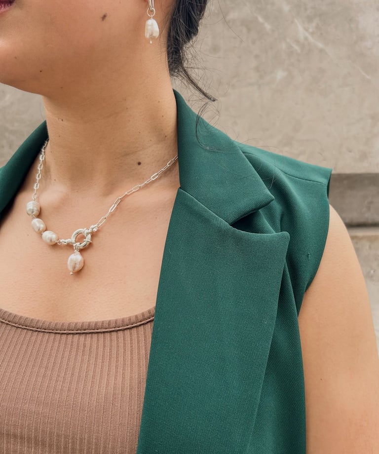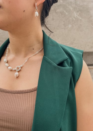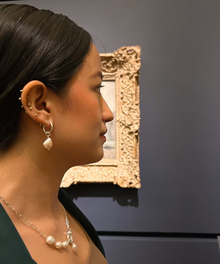 Cada pieza está elaborada en plata .925 y perlas cultivadas, algunas se realzan con un baño de oro de 18k, símbolo de lo delicado y lo eterno. Las formas suaves y los detalles orgánicos evocan la sensualidad y la feminidad en su estado más puro.